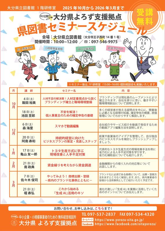 県立図書館では、大分県よろず支援拠点のご協力をいただき、大分県内の起業・