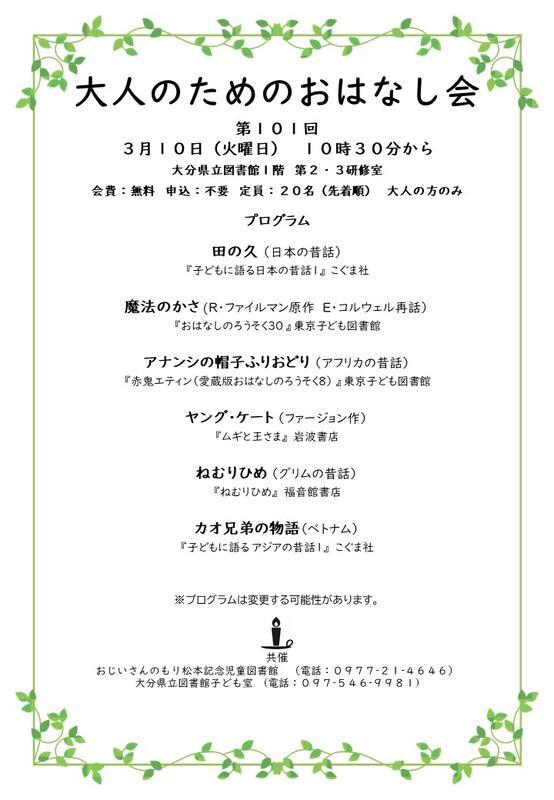 共催:おじいさんのもり松本記念児童図書館(電話:0977-21-4646)